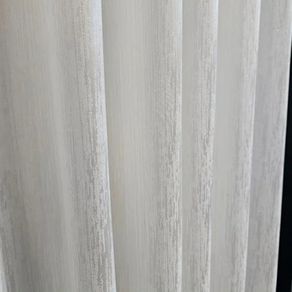 پرده حریر ساتن سفید آبشاری نقره ای از جنس ساتن ظریف میباشد که طرح آبشاری نقره ای رنگ آن به صورت بافته شده در خود پارچه میباشد.