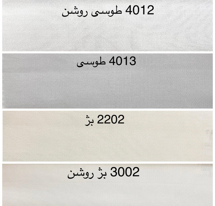 رنگهای این پارچه همگی ملیح و کم رنگ میباشند.