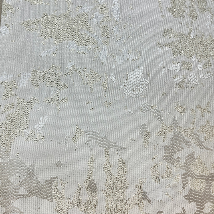 پارچه پرده حریر ساتن سفید پتینه طلایی عرض ۳ متر
